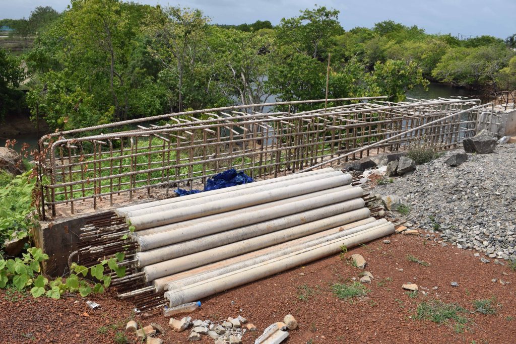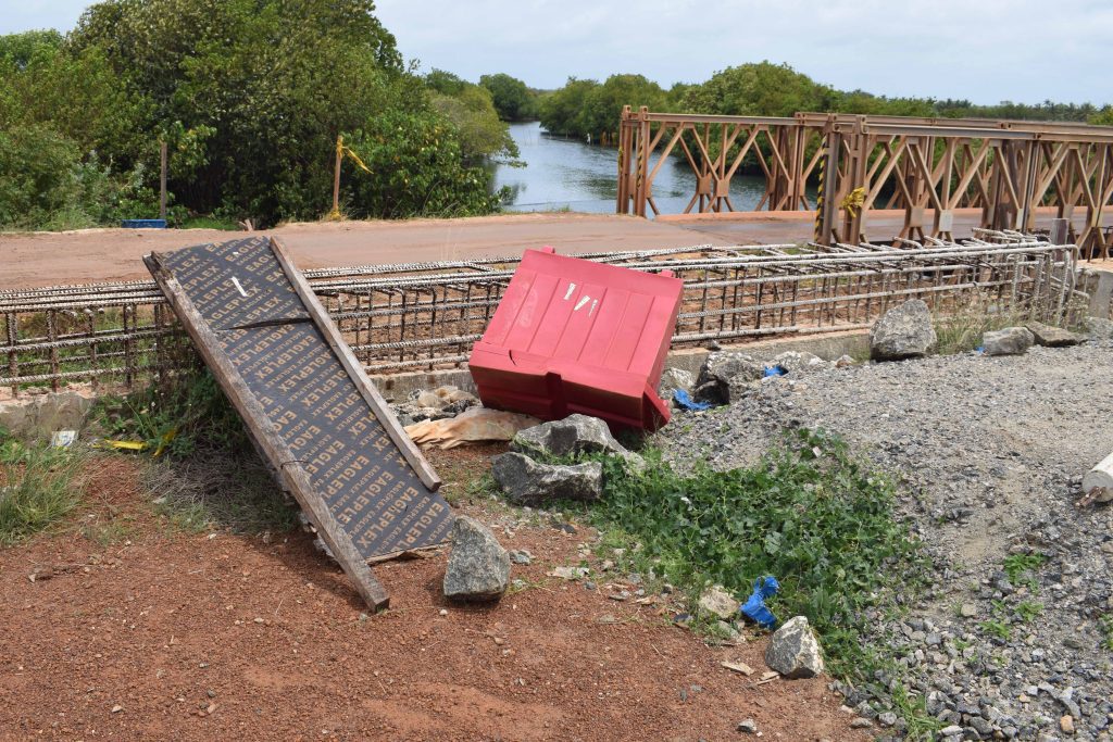 පාලම ඉදිකිරීම සදහා ගෙනවිත් ඇති කළු ගල්,කොන්ක්රීට් කණු ඇතුළු බොහෝ දෑ ඒ අවට ගොඩ ගසා ඇති බවක්ද දක්නට ඇත.පාලමේ ඉදිකිරීම් කටයුතු කළ සේවකයින්ගේ පහසුව වෙනුවෙන් තාවකාලිකව ඉදිකර තිබූ ගොඩනැගිළිද මේ වන විට ගලවා ඉවත් කර ඇත.එම ස්ථානයට සපයා තිබූ “තෙකලා”විදුලිය පහසුකම්ද ඉවත් කර ඇති බවක් දක්නට ඇත.